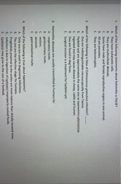 Solved 1 Which Of The Following Statements About Helminths Chegg Com